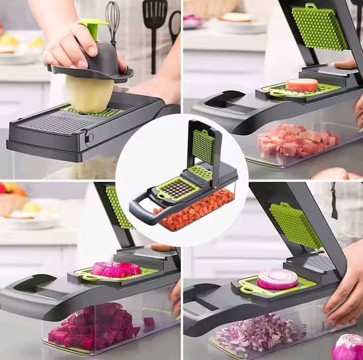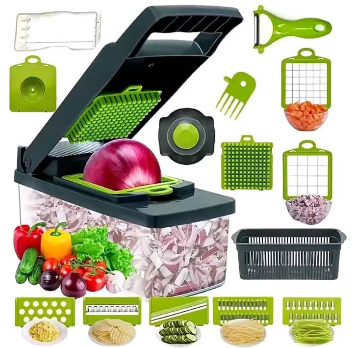 Gagne du temps en cuisine tout en obtenant des découpes parfaites grâce au Coupe-Légumes Multifonction 16 en 1, l’outil idéal pour cuisiner plus vite, plus proprement et sans effort !