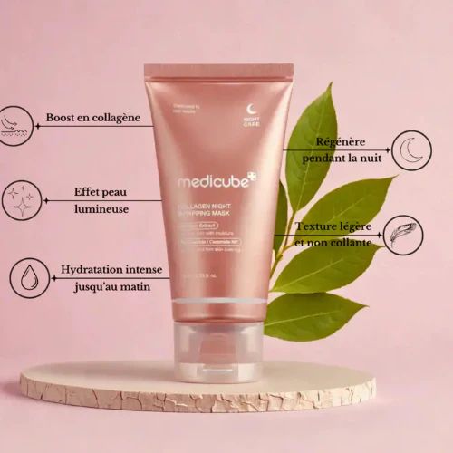 Le masque de nuit Medicube, enrichi en Triple Collagène , céramide et niacinamide , hydrate intensément, raffermit la peau et rend le teint éclatant dès la première application. Il lisse les rides, atténue les taches pigmentaires et redonne à votre visage un éclat naturel et une apparence visiblement plus jeune.