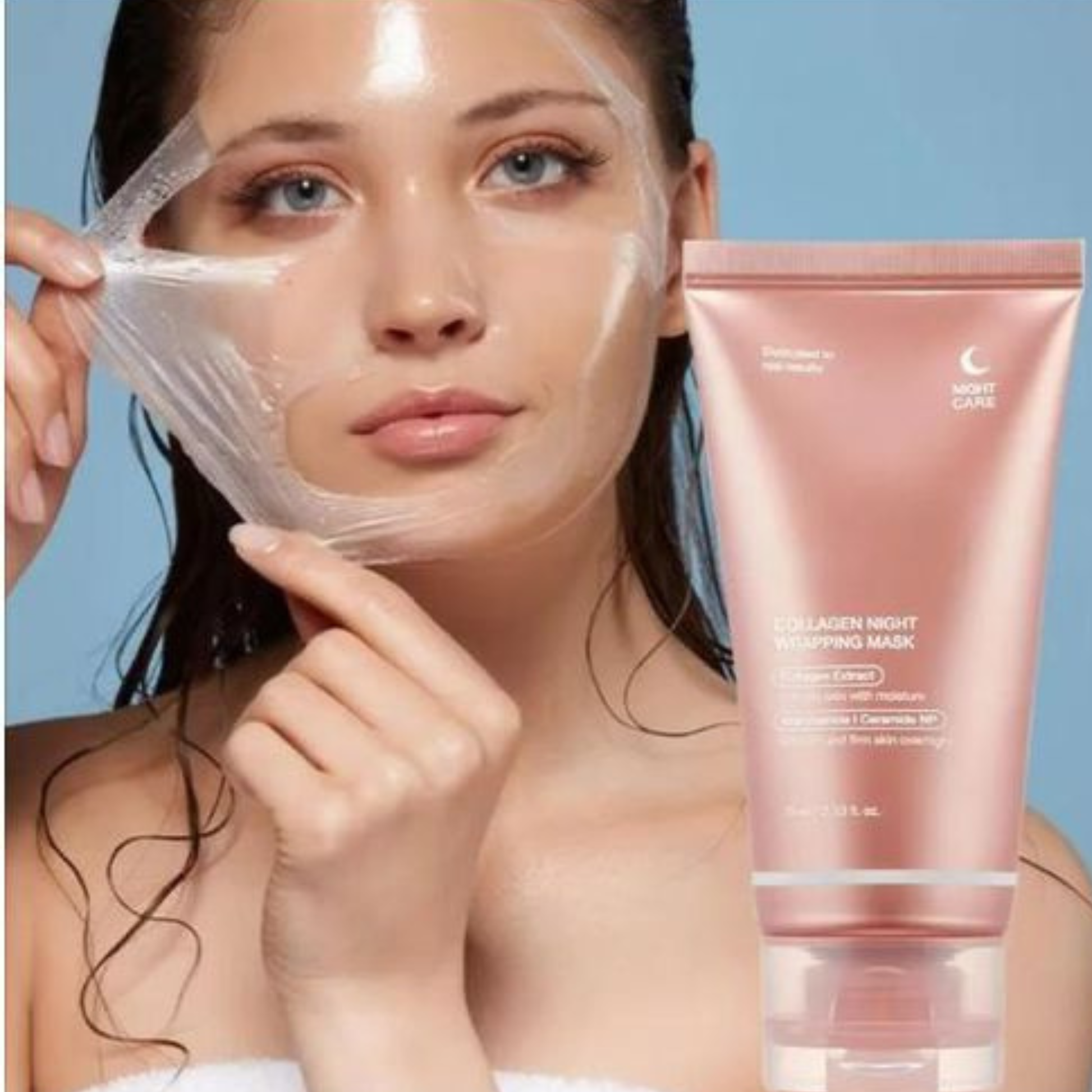 3. Le lendemain matin, retirez le film de protection au collagène et rincez délicatement votre visage à l'eau tiède.